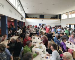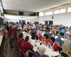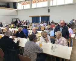 Nach mäßigem Beginn war die Festhalle dann aber zur Mittagszeit schon sehr gut besucht und einige Unerschrockene ließen sich auch unter den im Freien aufgebauten Zelten nieder. Spätestens um 13 Uhr war dann klar, dass sich unsere Gäste auch von dem schlechtem Wetter nicht abhalten ließen und sich trotzdem auf den Weg nach Althengstett gemacht hatten.