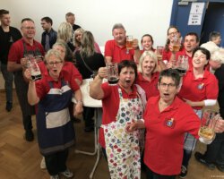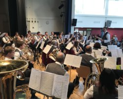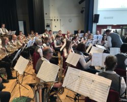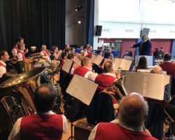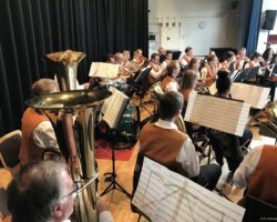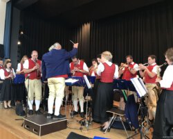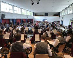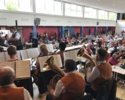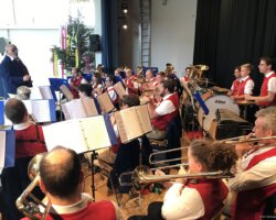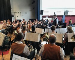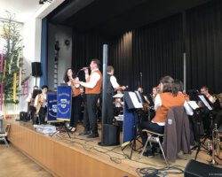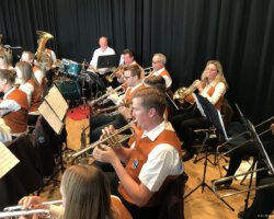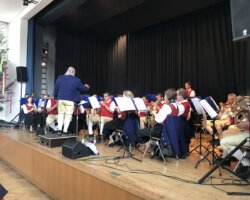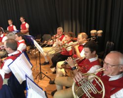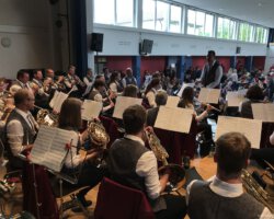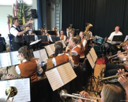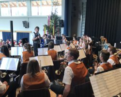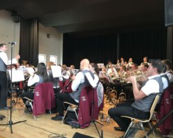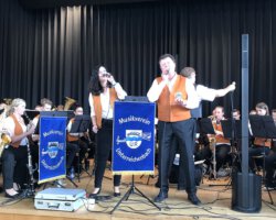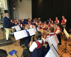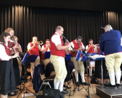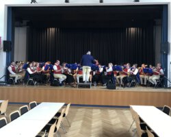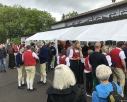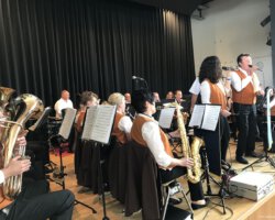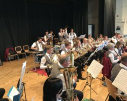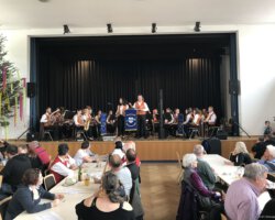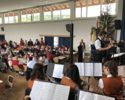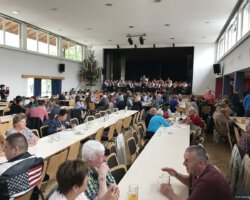 Eigentlich waren wir es ja gewohnt, dass am Vatertag die Sonne scheint – dieses Jahr war es leider nicht so :-(. Als sich die Musikerinnen und Musiker, Helferinnen und Helfer gestern um 8 Uhr in der Festhalle trafen, stand das Barometer tief im Keller. Bei Temperaturen um 12 Gard und leichtem Regen aus Westen wurde das Maibockfest in diesem Jahr kurzerhand in die Festhalle verlegt.