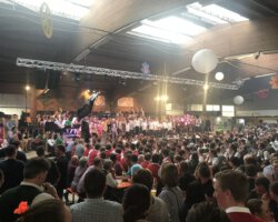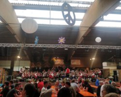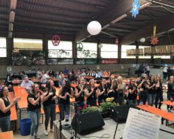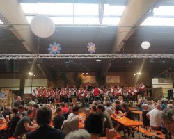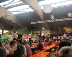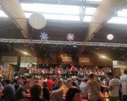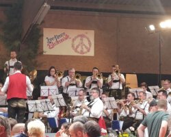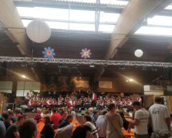 Um 20 Uhr startete dort der Showteil mit dem MV Krumbach unter dem Motto „Love, Peace and Blasmusik“. Neben eines Gesangswettbewerbs um das goldene Stimmrohr stand vor allem der Musikverein Krumbach im Rampenlicht, die mit einer sensationellen Show aus Blasmusik, Schlager, Rock und Pop mächtig Stimmung machten!