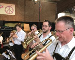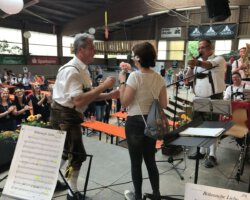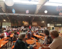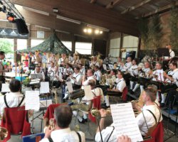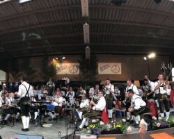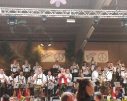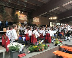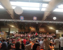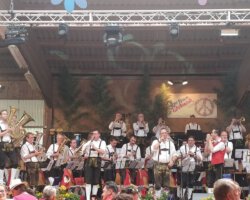 Auf Einladung des MV Krumbach waren wir zu Gast beim legendären Pfingstfest. Nach einer staufreien Anfahrt waren wir pünktlich vor Ort und konnten von 14 – 16.30 Uhr die Gäste auf dem Pfingstfest unterhalten. Nach kurzer Verpflegung ging es dann nach Friedrichshafen ins Hotel – einchecken – frisch machen und wieder zurück zum Pfingstfest.