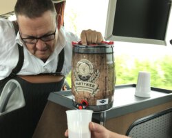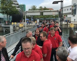 Gefeiert wurde bis in die frühen Morgenstunden und so war der ein oder andere beim Frühstück noch ein wenig unausgeschlafen. Trotzdem ging es pünktlich um 10 Uhr zum Bodensee nach Friedrichshafen und dann mit dem Katamaran nach Konstanz. Dort hatten wir rd. 3 Stunden die Gelegenheit uns Konstanz anzuschauen – leider hat das Wetter nicht ganz mitgespielt.