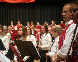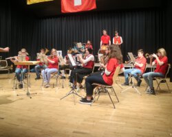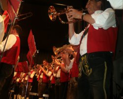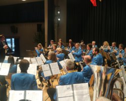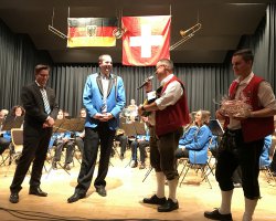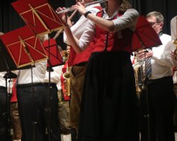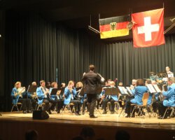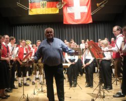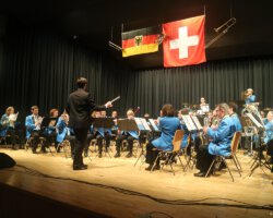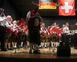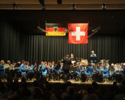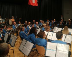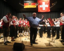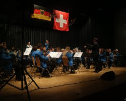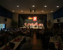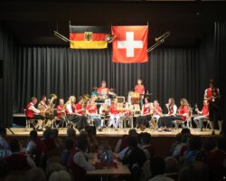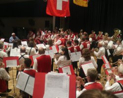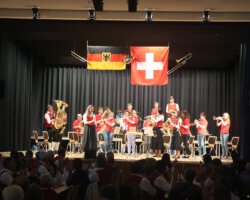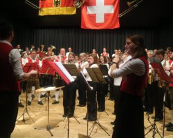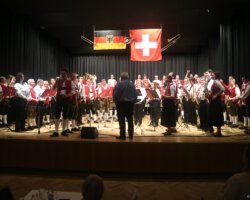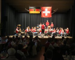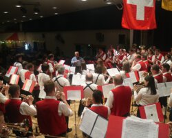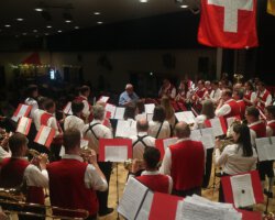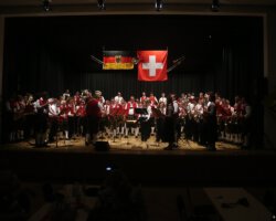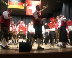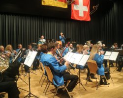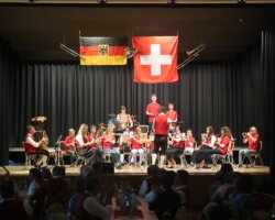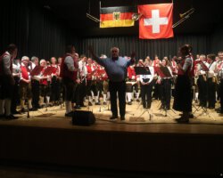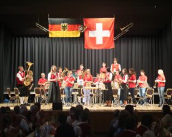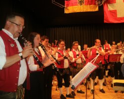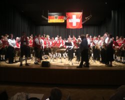 Unter der Leitung von Fabian Wirth legten unser Gäste los – Marsch und Polka kamen nicht zu kurz und wurden vom Publikum mit viel Applaus belohnt. Es gab aber auch einen Ausflug zu spanischen Schlösser und in die moderne Blasmusik. Ein rund um gelungener Auftritt! Eine Zugabe durfte natürlich nicht fehlen und mit „Dem Land Tirol die Treue“ verabschiedeten sich die Schweizer Musikerinnen und Musiker von der Bühne.