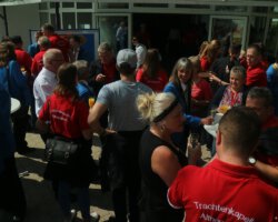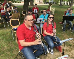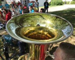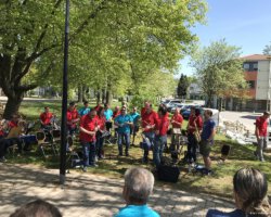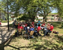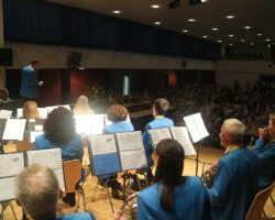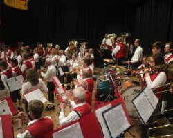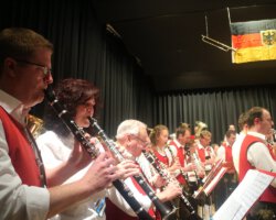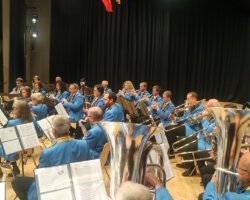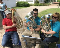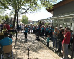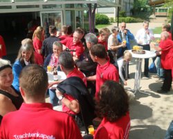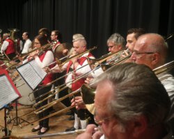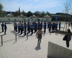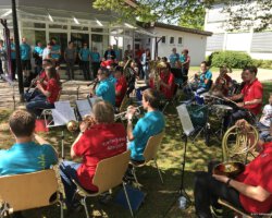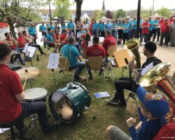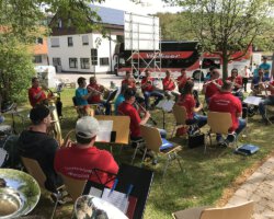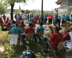 Anschließend nahm der MVA auf der Bühne Platz und stellte das Sommerprogramm mit Marsch, Polka Walzer und Schlagern dem Publikum vor. Natürlich waren auch Gassenhauer wie „die Vogelwiese“ oder der „Böhmische Traum“ mit dabei. Die Zugabe war dann dieses Jahr ein Gesamtchor der Musikerinnen und Musiker beider Vereine. Also hieß es erst einmal auf der Bühne Platz zu schaffen.