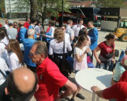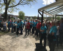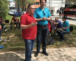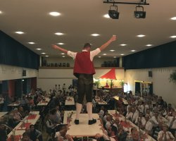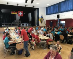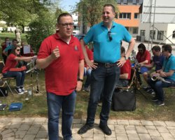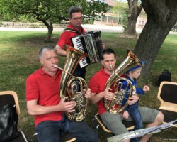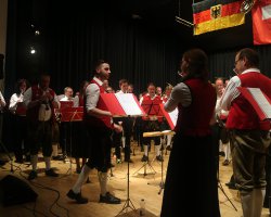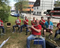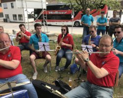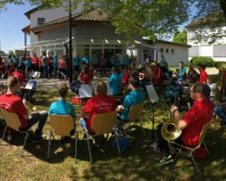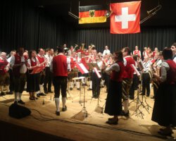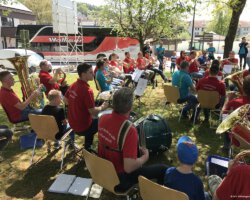 Nach einer, für den ein oder anderen, kurzen Nacht trafen wir uns alle um 9.30 Uhr in der Festhalle zu einem gemütlichen Brunch, der von den beiden Nonnenmann’s Frank & Horst hervorragend vorbereitet wurde. Danach ging es zu einem spontanen Platzkonzert vor die Halle – Musikerinnen und Musiker beider Vereine gaben Volksmusikhits zum Besten und das Publikum ging begeistert mit! Nach Maultaschen und Weißwürsten gab es dann den 2. Teil des Platzkonzertes und eh man sich es versah wurde schon zum Aufbruch gerufen! Gunther Böttinger und Präsident Raphael Lusti bedanken sich nochmals bei allen Mitwirkenden für ein gelungenes Wochenende.