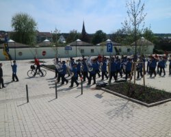 Gestern um 13.30 Uhr ertönten in Althengstetts Ortsmitte ungewöhnliche Klänge – kein Rasenmäher oder Laubbläser war zu hören, sondern beste Blasmusik aus der Schweiz. Der MV Uzwil-Henau war pünktlich um 14 Uhr in Althengstett „gelandet“ und hat es sich nicht nehmen lassen, mit Marschmusik durch den Ort zu marschieren. Nach kurzer Strecke wurden die Schweizer Musikanten an der Festhalle begrüßt und zur Stärkung gab es erst einmal einen kleinen Sektempfang.