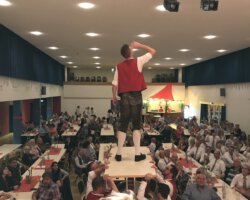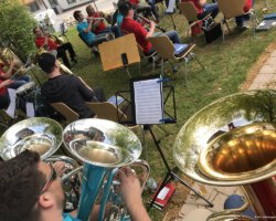 Der Bus wurde entladen, die Betten zugeteilt und die Musikerinnen und Musiker in die Quartiere verteilt. Bereits um 18 Uhr traf man sich dann schon wieder zum gemeinsamen Abendessen und gut gestärkt begann pünktlich um 19.30 unser Saisonauftakt.