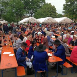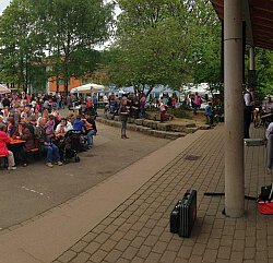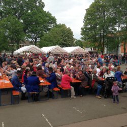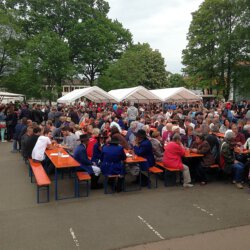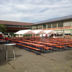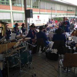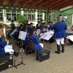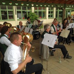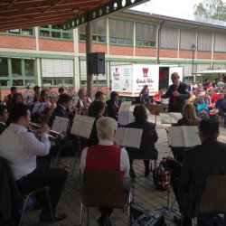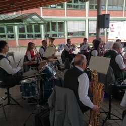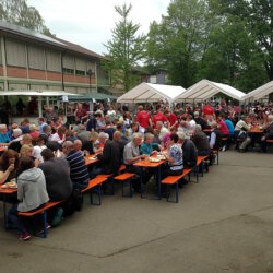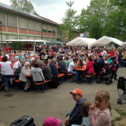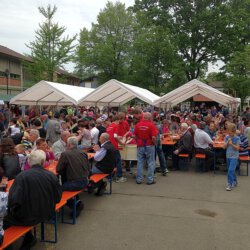 Bedanken müssen wir uns in diesem Jahr vor allem bei Petrus, der wohl auch Lederhosen trägt und uns am Vatertag vor Regen und Sturm bewahrt hat. So fanden viele Gäste aus nah und fern Platz auf dem Schulhof und wurden dort musikalisch von den Musikvereinen aus Magstadt, Emmingen und Enzklösterle bestens unterhalten.