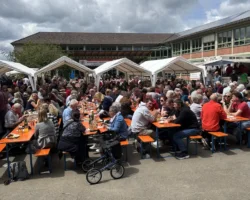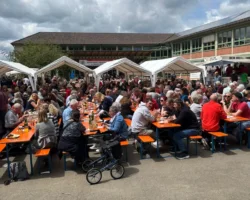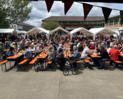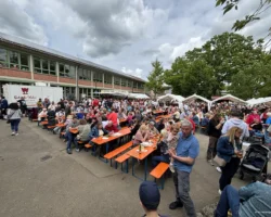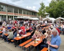 Wer hätte das gedacht – nachdem der Mittwoch doch noch kalt und verregnet war, war uns der Wettergott an Himmelfahrt wieder einmal gnädig. Bei bestem Wander- und Hocketsewetter konnte wir am Donnerstag morgen den Schulhof vorbereiten und bereits um 12 Uhr waren unsere Sitzplätze leider schon ausverkauft.