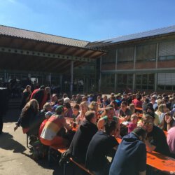 Um 11.30 Uhr startete der IMV Grünwettersbach mit dem Frühschoppenkonzert und schon bald war der Schulhof gut gefüllt. Bei Weißwurst, Forellen, Cevapcici, Bratwurst oder Steaks konnte der Hunger gestillt werden. Zum Nachmittagskaffee übernahm dann der MV Merklingen die musikalische Unterhaltung, das Ende des Tages wurde vom MV Bad Liebenzell-Beinberg eingeläutet.