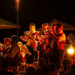 Hohe Temperaturen und wolkenloser Himmel erfreuten die Musikertruppe, wenngleich sie für die Träger der traditionellen Althengstetter Tracht, zu der auch die Hirschlederhose gehört, eine gewisse Herausforderung darstellten. Doch selbst diesem Aspekt trugen die Gastgeber Rechnung. Sie legten den Schwerpunkt der musikalischen Auftritte in die milden Abendstunden.