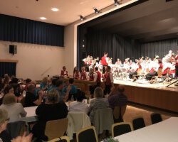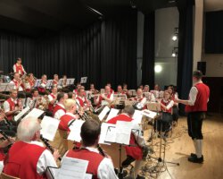 Der MVA verabschiedete sich mit dem Klassiker „Bis bald auf Wiedersehen“, durfte dann aber doch noch 3 Zugaben geben, bis das Programm dann endgültig zu Ende war. Anschließend gab es noch die Möglichkeit, in gemütlicher Runde zusammen zu sitzen, was wir mit unseren Schweizer Gästen auch ausgiebig taten.