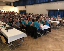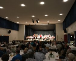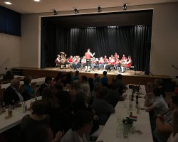 Bereits sehr früh hatten sich schon viele Fans in der Halle eingefunden und so konnte Vorstand Gunther Böttinger pünktlich um 19.30 Uhr die Gäste begrüßen. Ganz besonders haben wir uns über den Besuch unserer Musikerfreunde aus Henau-Niederuzwil gefreut, die nach langer Zeit mit einer kleinen Abordnung bei uns zu Gast waren.