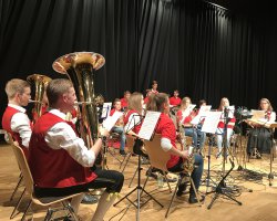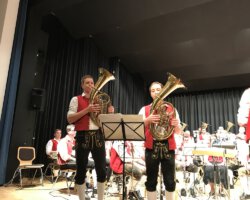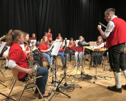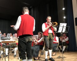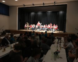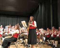 Die Jugendkapelle unter der Leitung von Maximilian Lötterle eröffnete den Abend mit modernen Stücken. Bei dem Titel „Fascinating Drums“ zeigte Patrick Hühner was man mit einem Schlagzeug so alles anstellen kann – seine Musikkollegen und -kolleginnen verliessen derweil die Bühne, kamen dann aber wieder rechtzeitig zurück. Die Jugendkapelle verabschiedete sich mit eine zünftigen Polka!