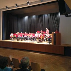 Nach einer kurzen Umbaupause waren dann die „Alten“ gefordert. Querbeet durch die Musik ging es – mit Melodien von Abba, Udo Jürgens, Udo Lindenberg und sinfonischen Stücken wie „Auf einem persischen Markt“ oder „Scandinavia“. Danach dirigierte Ulli Brehm die Musiker durch den volkstümlichen Teil mit traditionelle böhmisch-mährischer Blasmusik.