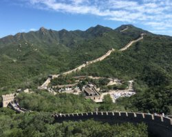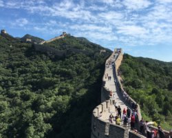 Am Morgen des bereits fünften Reisetages starteten wir dann in aller Früh, um die chinesische Mauer anzuschauen. Mit einer Seilbahn (österreichisches Modell) wurden wir direkt zur Mauer gebracht und hatten die Möglichkeit auf der Mauer den ca. 1,5h dauernden Abstieg zu bestreiten. Uns bot sich ein absolut beeindruckendes Bauwerk von unvorstellbarer Größe. Nach dem Besuch der Mauer verabschiedeten wir unsere beiden Reisebegleiter und machten uns auf den Weg ins 1000km südlich von Peking gelegene Nanjing. Mit dem Schnellzug trafen wir nach 4,5 Stunden um kurz vor 21 Uhr pünktlich in Nanjing ein und wurden von unseren neuen Reisebegleiterinnen Miss Jiang Yu, Miss Yu Wenjun und Miss Sun Shangwen empfangen.