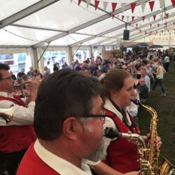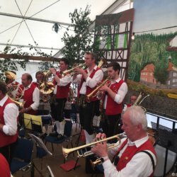 Vergangenen Sonntag waren wir bei unseren Musikerfreunden in Grünwettersbach. Nach dem Vorabend schon Jägerberg-Brass den Band-Contest gewonnen hatte und damit erfolgreich den Titel verteidigt hat, durften wir ab 11.30 Uhr beim Frühschoppen unterhalten.