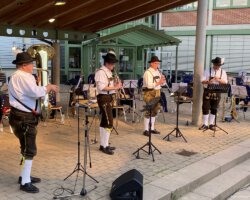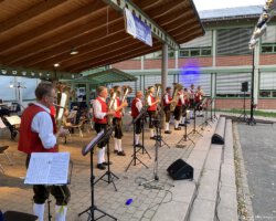 Trotz Corona oder gerade deswegen haben doch einige Zuschauer unseren Darbietungen gelauscht. Uns hat es jedenfalls viel Spaß gemacht endlich mal wieder ein kleines Konzert zu geben – nach der langen Zeit ohne Blasmusik! Vielen Dank an dieser Stelle noch an alle unsere Helferinnen und Helfer und an Schnaufer Eventmanagement & Service für die stimmungsvolle Beleuchtung!