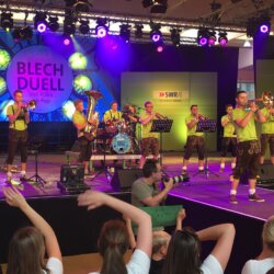 Nach dem Gewinn des Vorentscheids am 08. Juli im Kurpark in Bad Liebenzell war es gestern so weit: Jägerberg Brass stand im Finale des SWR4 Blechduell 2016! Und deshalb machten sich am Sonntag morgen rund 100 Fans auf den Weg nach Geisingen. Sechs Bands waren angetreten den Wettbewerb zu gewinnen – ganz zum Schluss Stand „Jägerberg Brass“ auf dem Programm.