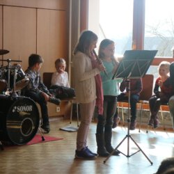 Beim heutigen Vorspielnachmittag hat unser Nachwuchs eindrucksvoll gezeigt, was man mit einem Instrument alles anstellen kann. Den Anfang machten unser „Flötenkids“ die von Sabine Herdter betreut werden. Danach war die neu gegründete Bläserklasse der Gemeinschaftsschule Althengstett an der Reihe – der erste Auftritt war schon ganz eindrucksvoll und wurde von den Mädchen und Jungen bravourös gemeistert.