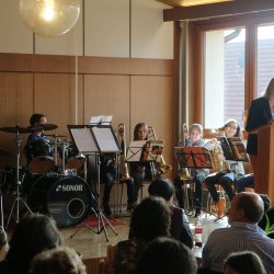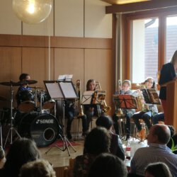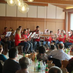 Dominik Orth zeigte dem Publikum, was es heißt, ein Musikabi zu absolvieren – in 3 Tagen muss er zur Prüfung – heute hat er dafür schon einmal „geübt“ und gezeigt, was mit einem Horn alles möglich ist! Im Anschluß traten dann die Jugendgruppe und die Jugendkapelle des MVA ins Scheinwerferlicht und zeigten, was sie im letzten Jahr mit Maximilian Lötterle an der Spitze gelernt haben. Den guten Schluss machten dann noch Sebastian, Janik und Maximilian mit eigens für heute einstudierten Stücken.